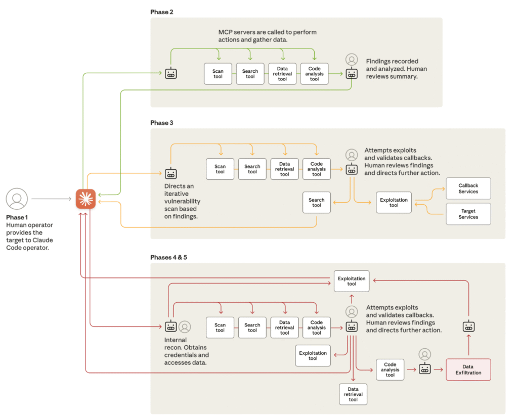 Anthropic beschreibt die Nutzung ihres Coding-Assistenten Claude Code als Grundlage für einen erfolgreichen Cyberangriff auf rund 30 Firmen: Disrupting the first reported AI-orchestrated cyber espionage campaign. Den Angreifern (wahrscheinlich die staatliche chinesische Gruppe GTG-1002) gelang es nicht nur die Arbeit von menschlichen Hackers massiv zu skalieren, aber auch die bestehenden Sicherheitsmechanismen bei Claude Code auszuhebeln.